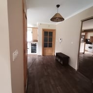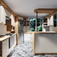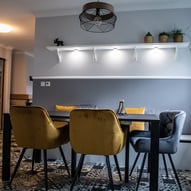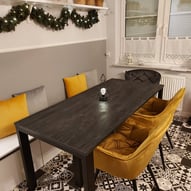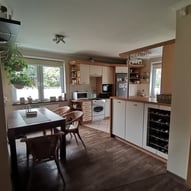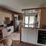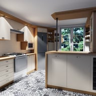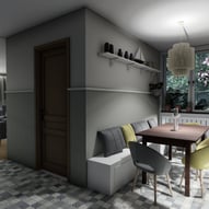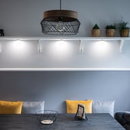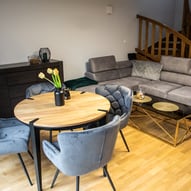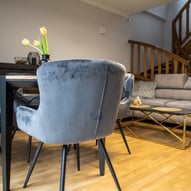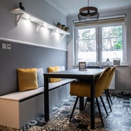 Trzeba było tak wszystko skomponować ze sobą, aby wnętrze było spójne, funkcjonalne. Płytki podłogowe w kuchni wymagały wymiany - zastosowaliśmy panele winylowe, które wkomponowały się we wnętrza, a jednocześnie wyrównały różnicę w poziomach między kuchnią, a salonem. Obyło się, bez "rozbierania" mebli kuchennych :)