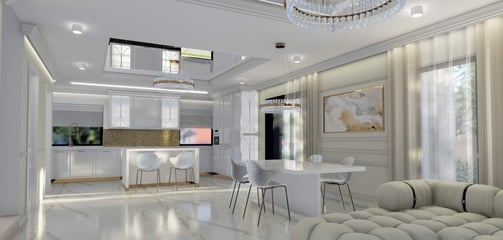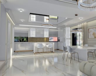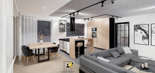 Projekt opierał się przede wszystkim na ujednoliceniu oraz połączeniu stref - kuchni wraz z salonem - w domku jednorodzinnym. Na prośbę Klientów umeblowanie kuchenne miało pozostać bez zmian.